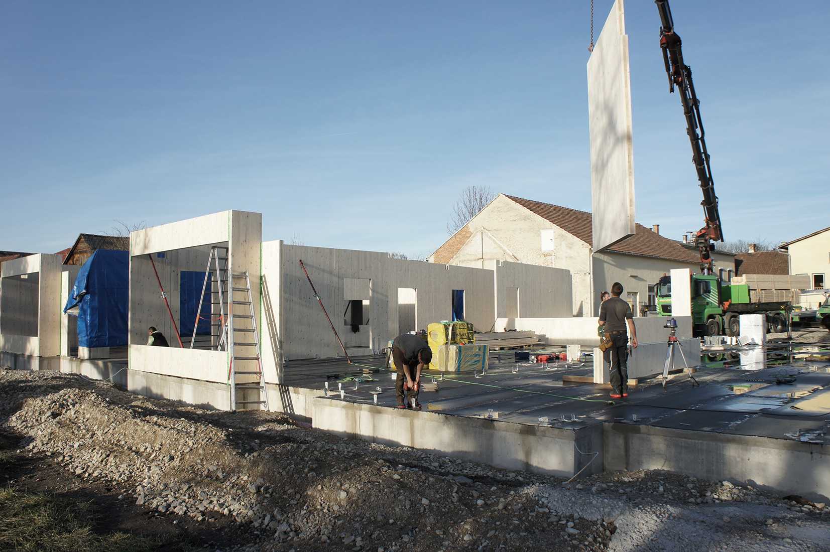 Die Fügung aus Bestand (Gasthaus mit Veranstaltungssaal) und neuer Schule in Holzbauweise bildet eine geschützt liegende, dabei multifunktional bespielbare neue Ortsmitte von schulischer und außerschulischer Qualität.